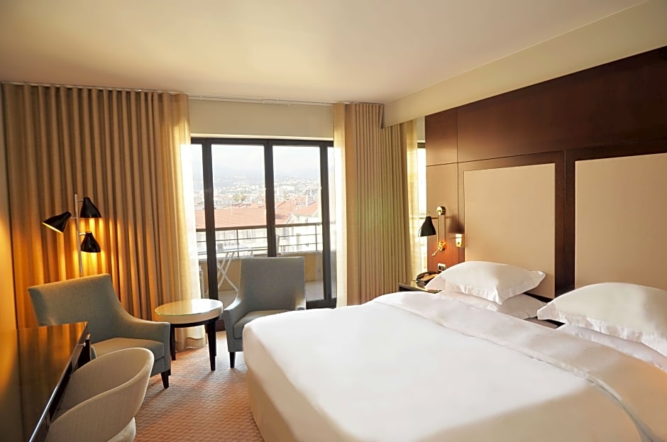Offering a furnished balcony with a view over the mountains and the city, this 32 to 35 m2 room has 1 king bed, a desk and a marble bathroom.